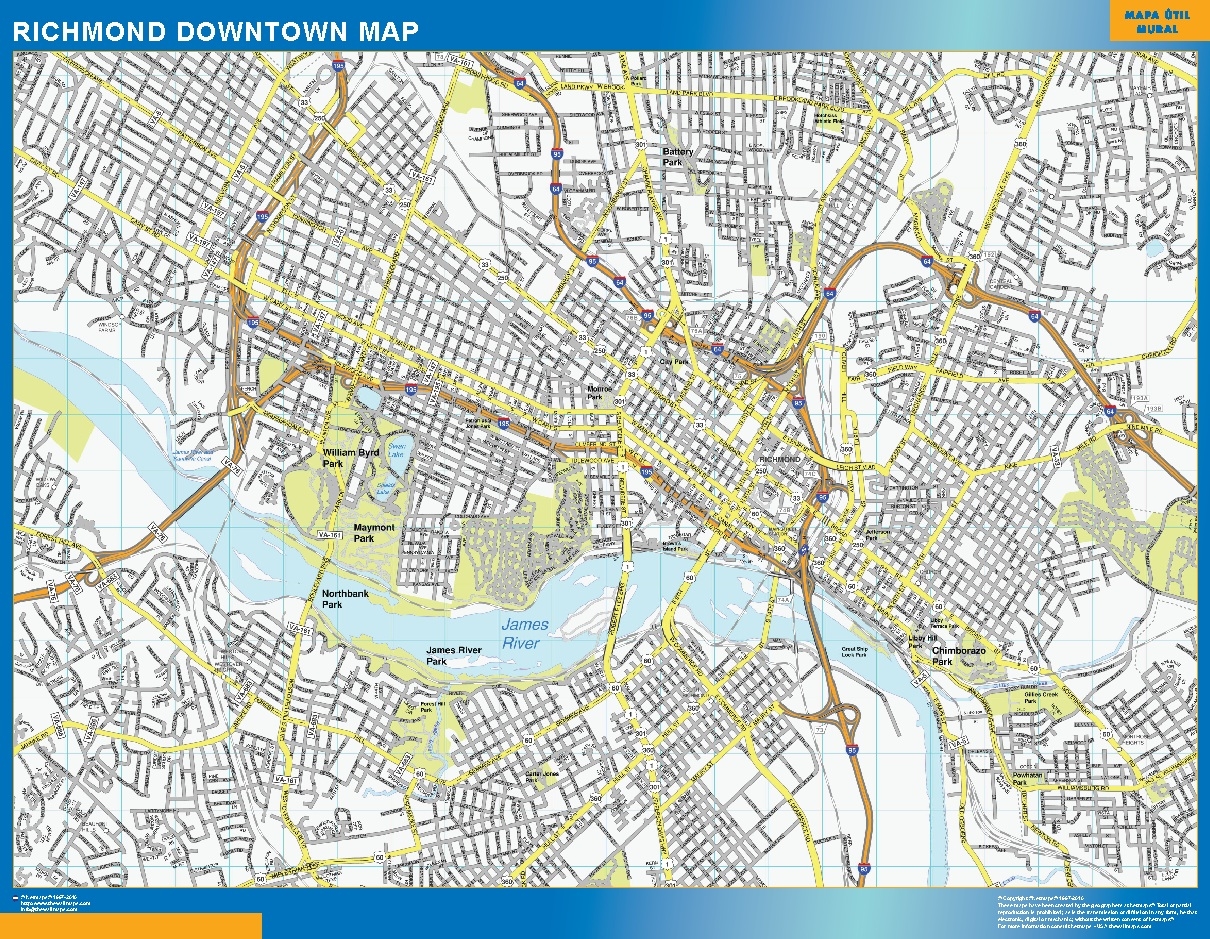 Richmond Downtown Wall Map Wall Maps Of The World THE WALL MAPS