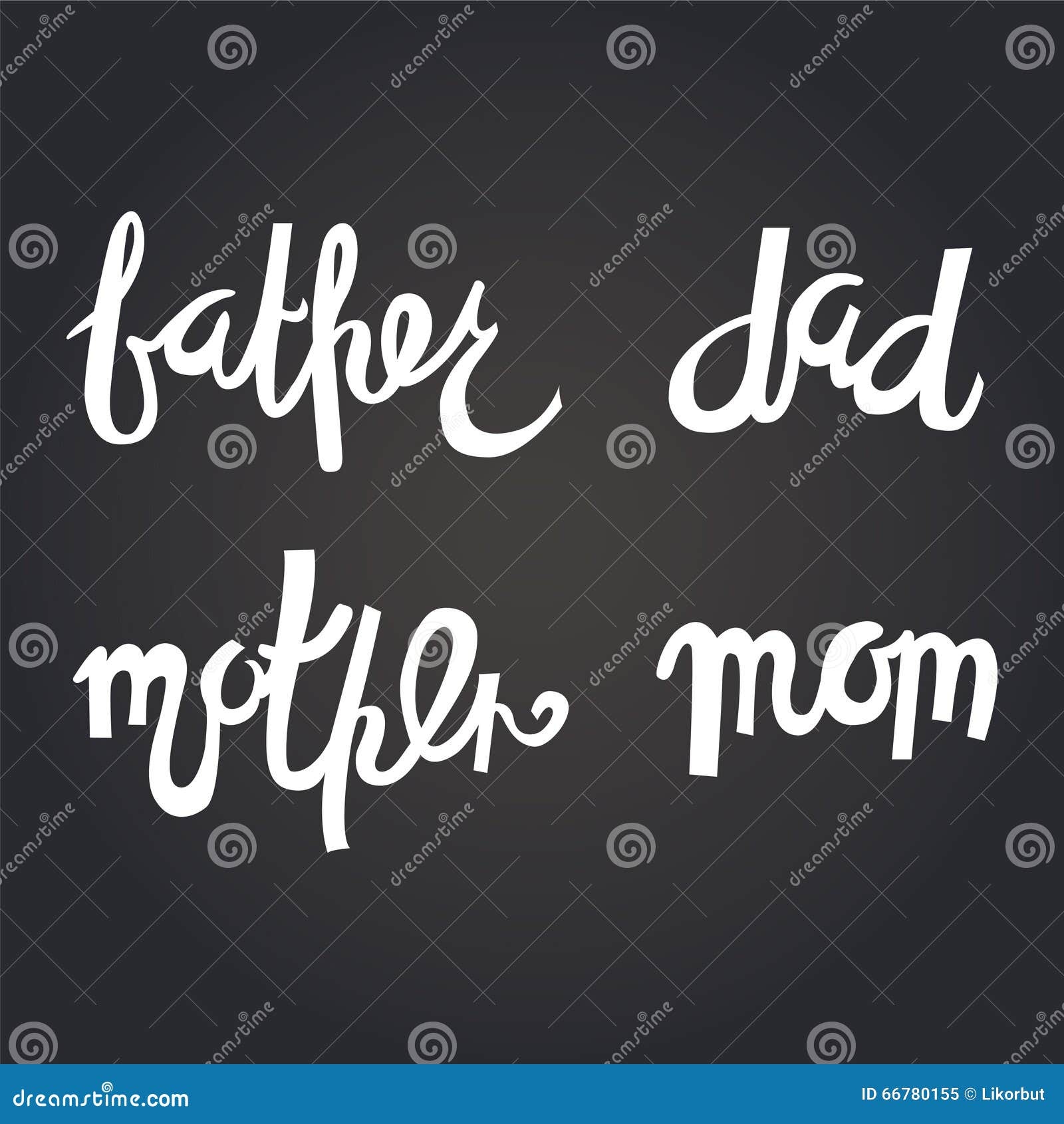 Father Dad Mother And Mom Hand Drawn Lettering Stock Vector Illustration Of Funny Father 66780155