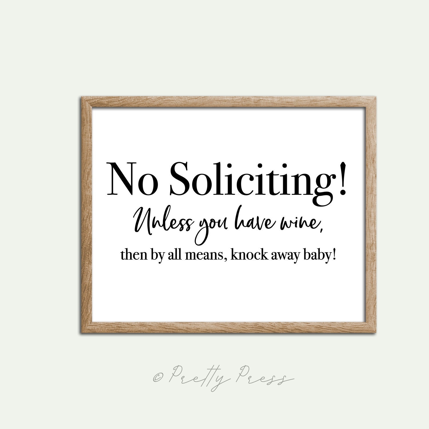 No Soliciting Sign Printable Art Funny Art For Home No Soliciting Unless You Have WINE Home Decor Entrance Sign DIY Printable Art Etsy Denmark