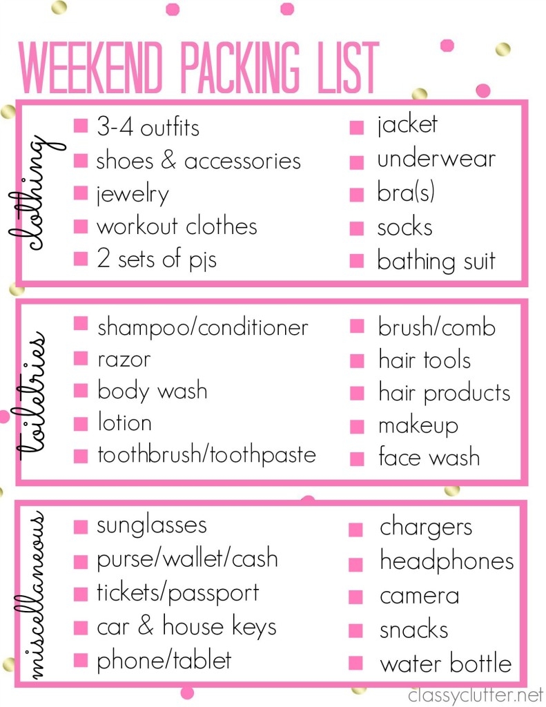 Printable Packing List For Weekend Trip