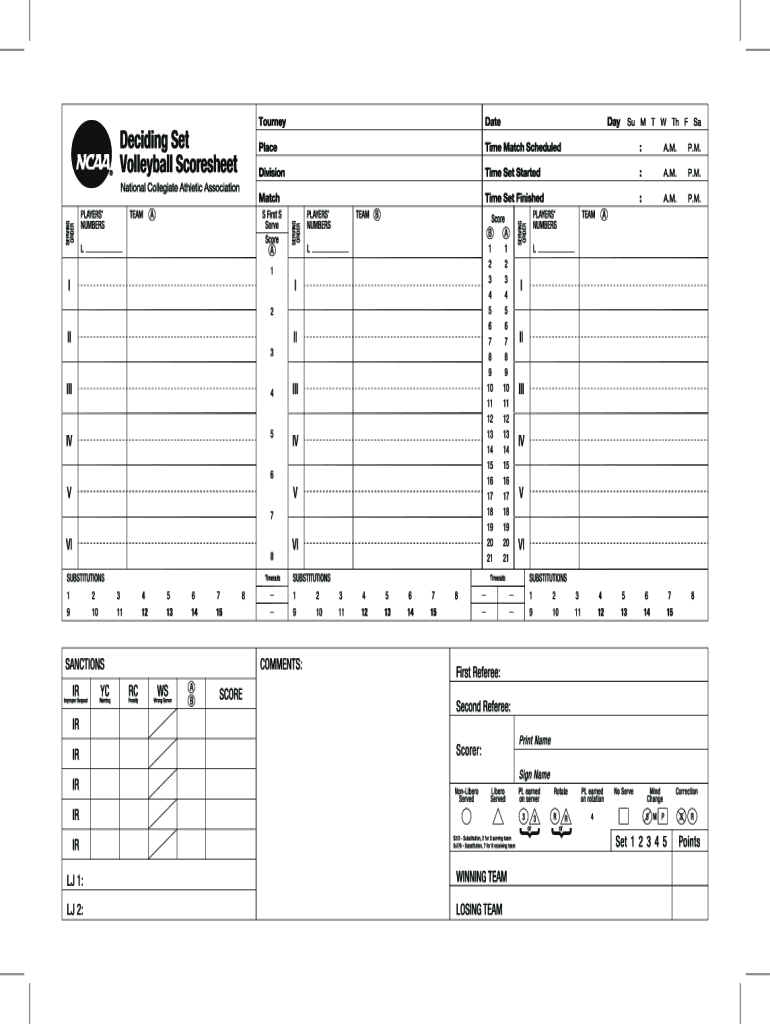 2016 2025 Form NCAA Deciding Set Volleyball Scoresheet Fill Online Printable Fillable Blank PdfFiller