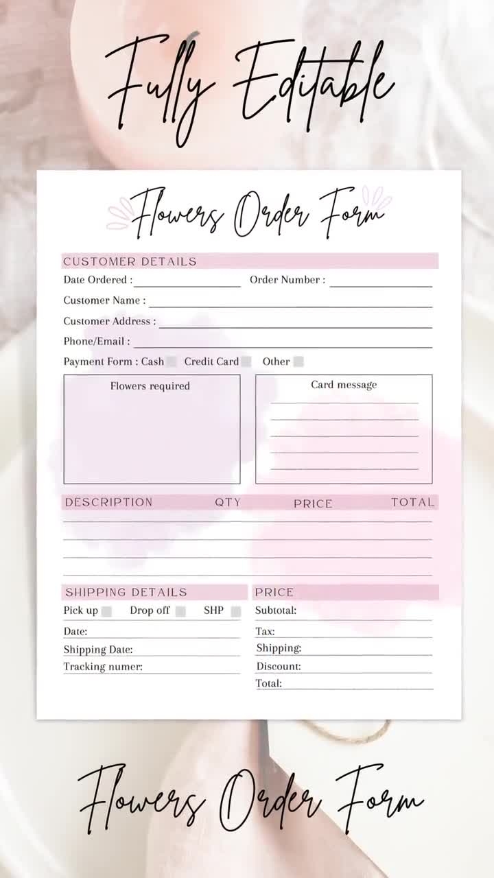 PRINTABLE FLORIST ORDER Form Editable Flowers Order Form Template Florist Business Order Sheet Flowers Order Tracker Document Etsy