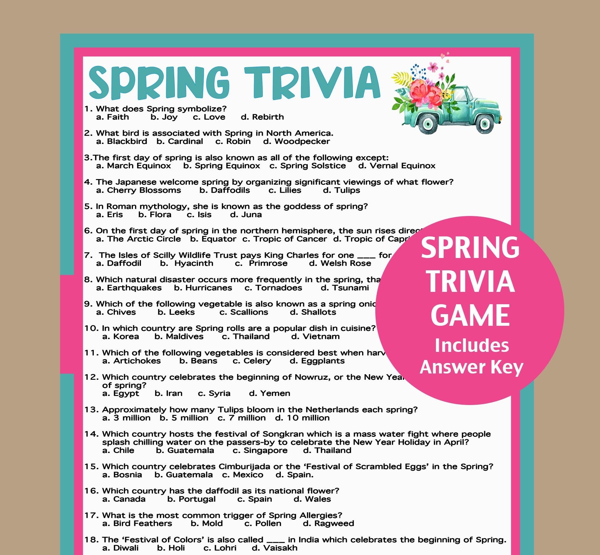 Free Printable Spring Trivia Quiz With Answer Key