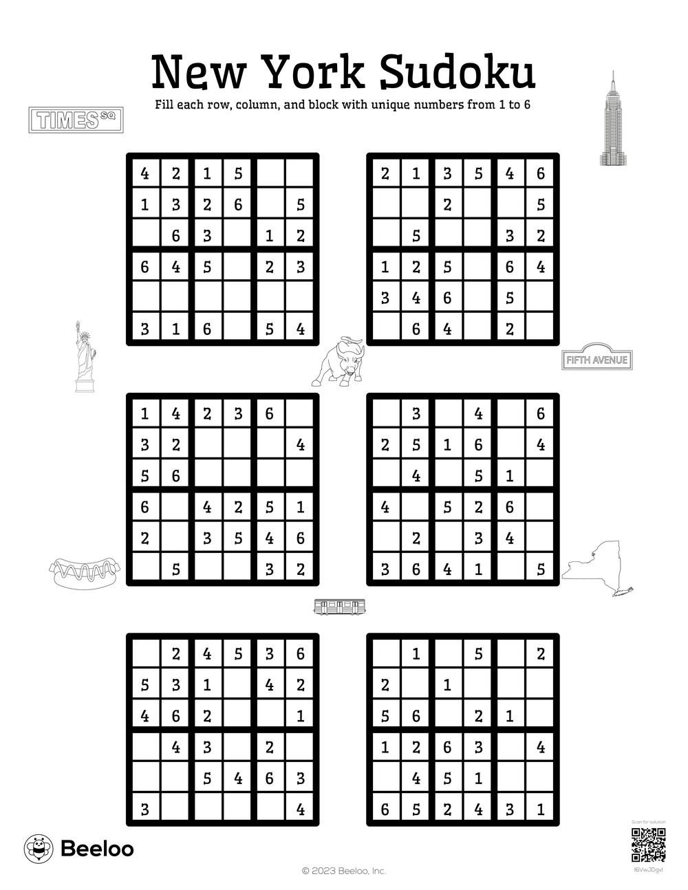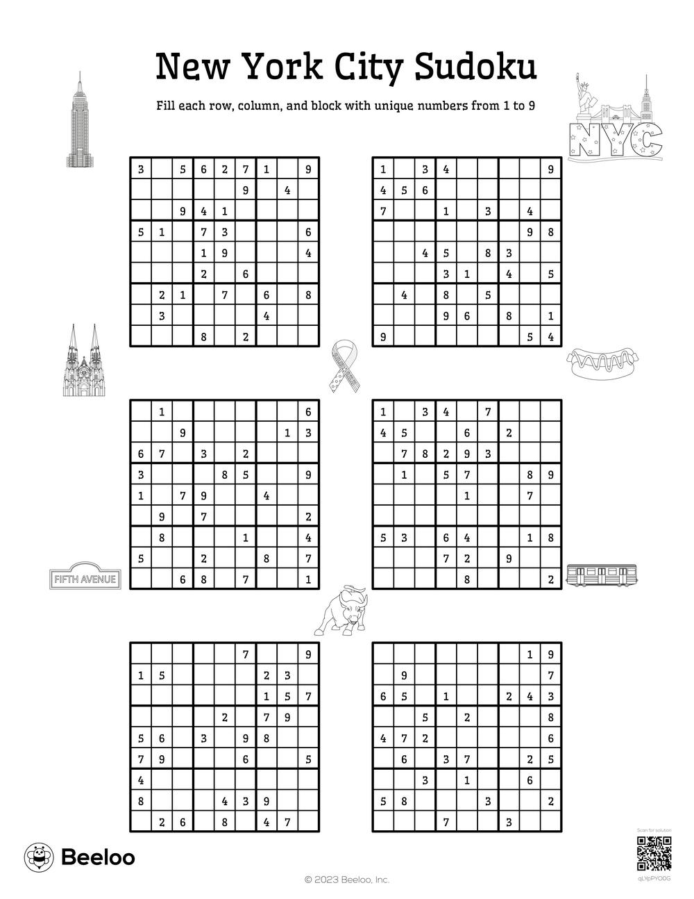 New York Sudoku Beeloo Printable Crafts And Activities For Kids