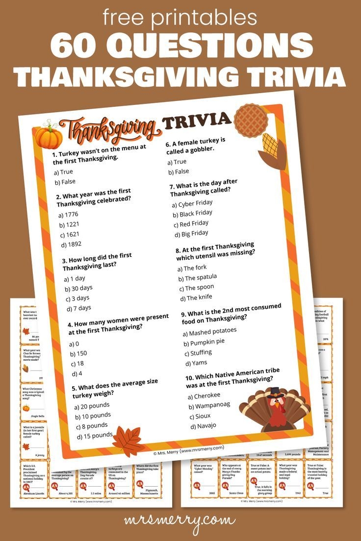 60 Thanksgiving Trivia Questions And Answers Printable Mrs Merry