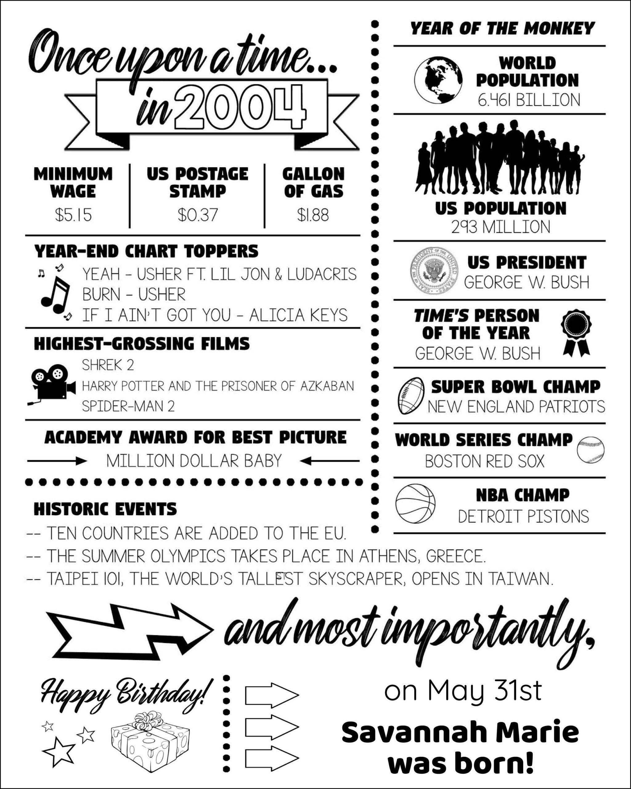 These printables are a great way to discover interesting facts and highlights from the year you entered the world. From historical events to popular movies and music, you can create a personalized snapshot of the past that is unique to you.