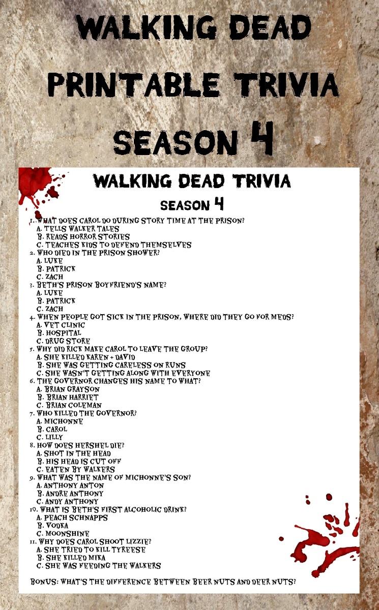 Memory Test Walking Dead Season 4 Trivia Printable My Pinterventures