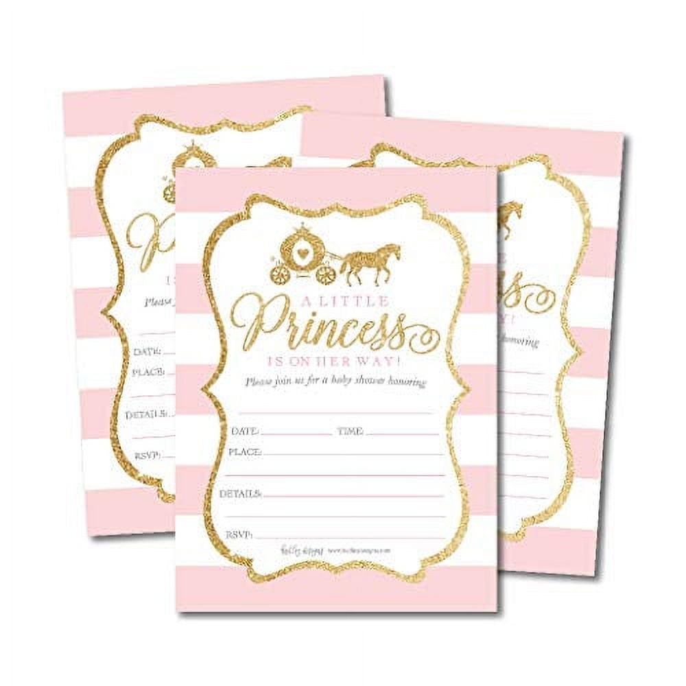 25 Little Princess Baby Shower Invitations Pink Gold Sprinkle Invite For Girl Modern Gender Theme On Her Way Cute Printed Fill Or Write In Blank Printable Card Unique Coed Party Supplies