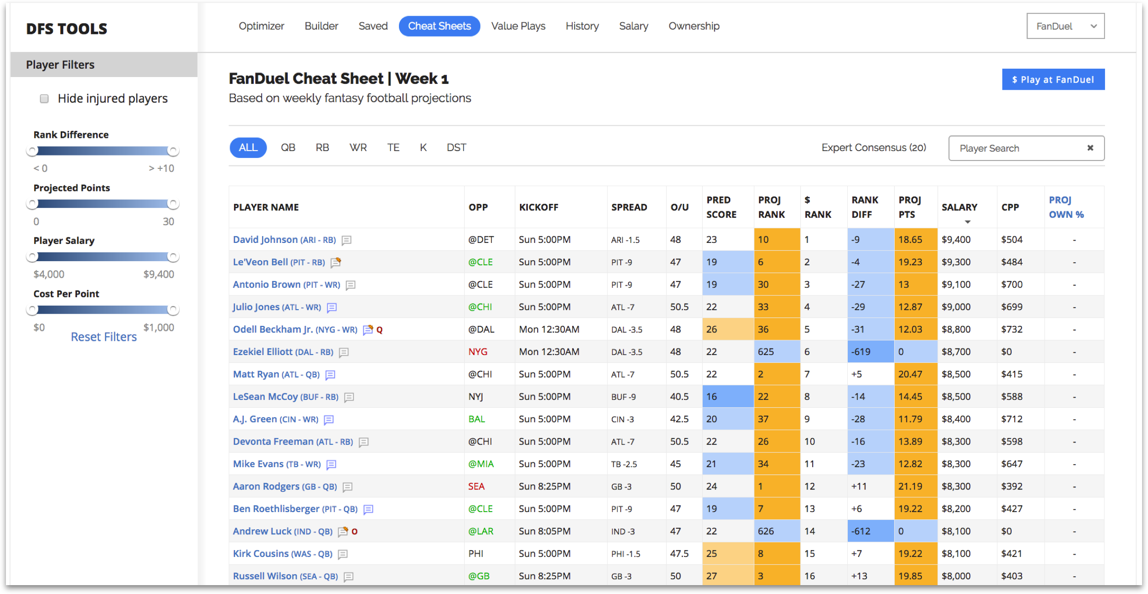 Yahoo Daily Football Cheat Sheet Fantasy RB FantasyPros