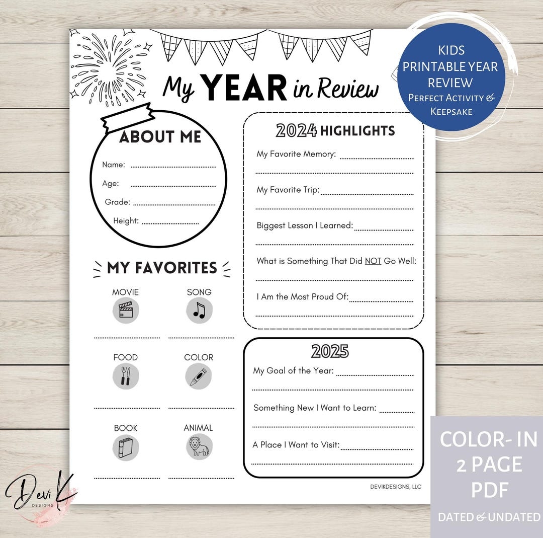 Kids Year In Review 2024 2025 Printable Activity Sheet Undated Kid Printable Reflection Page Kids New Year Coloring Activity Keepsake Etsy Canada