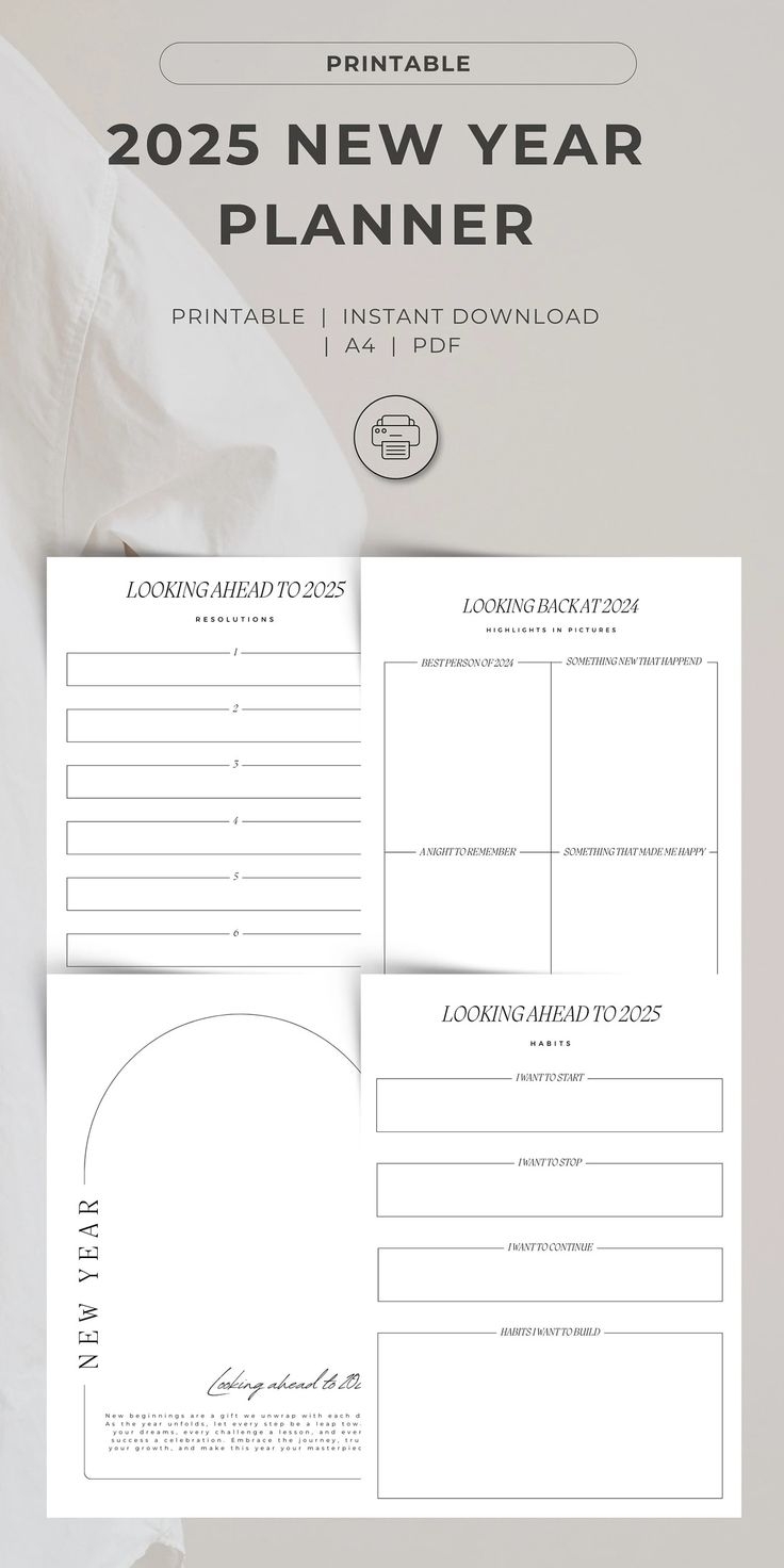 Minimalist 2025 New Year Goals Planner Printable For Reflection New Year Resolutions Printable Year In Review 2025 New Year Tracker Etsy